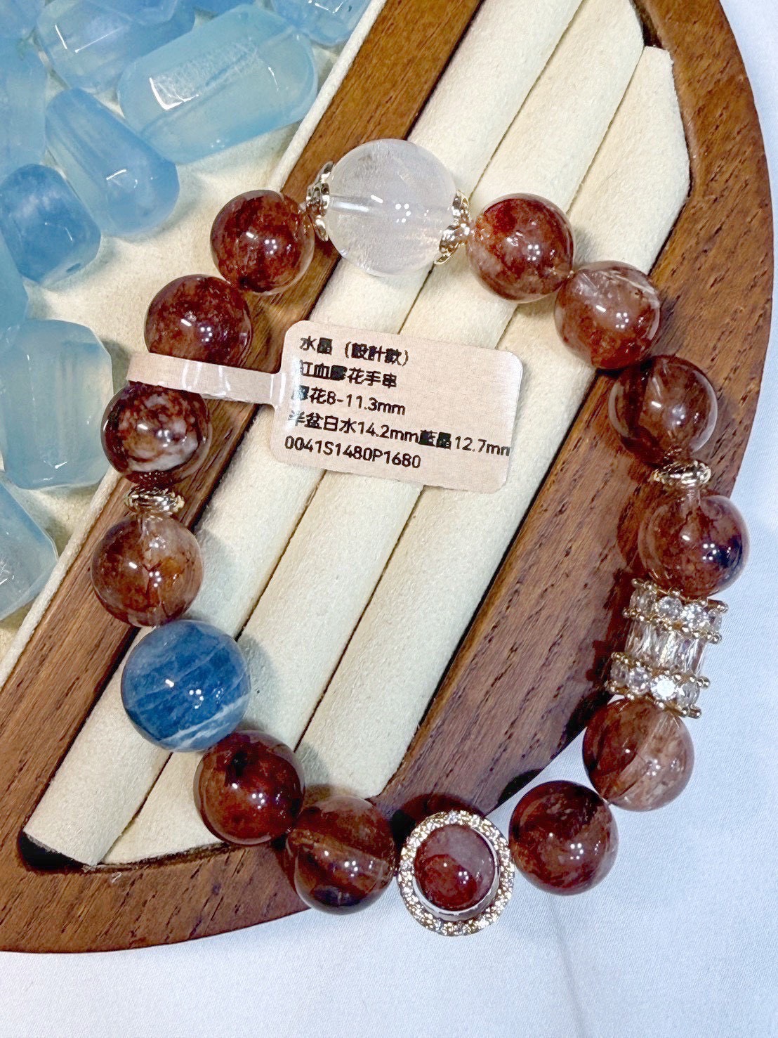 0041紅血膠花手串