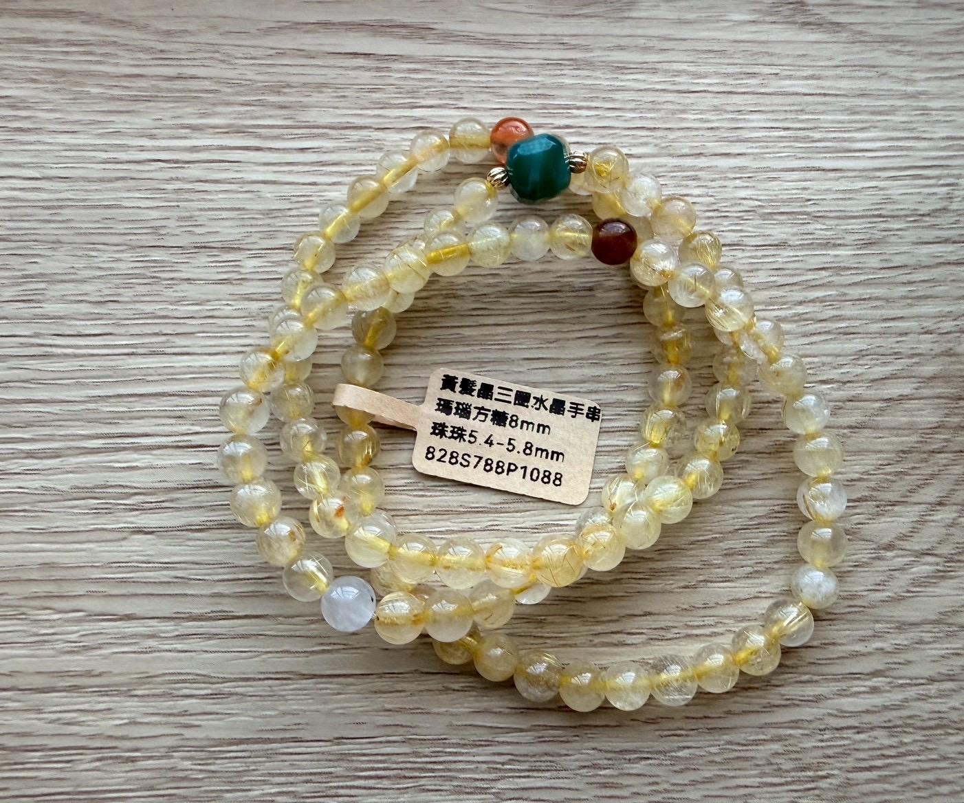 828黃髮晶3圈水晶手串